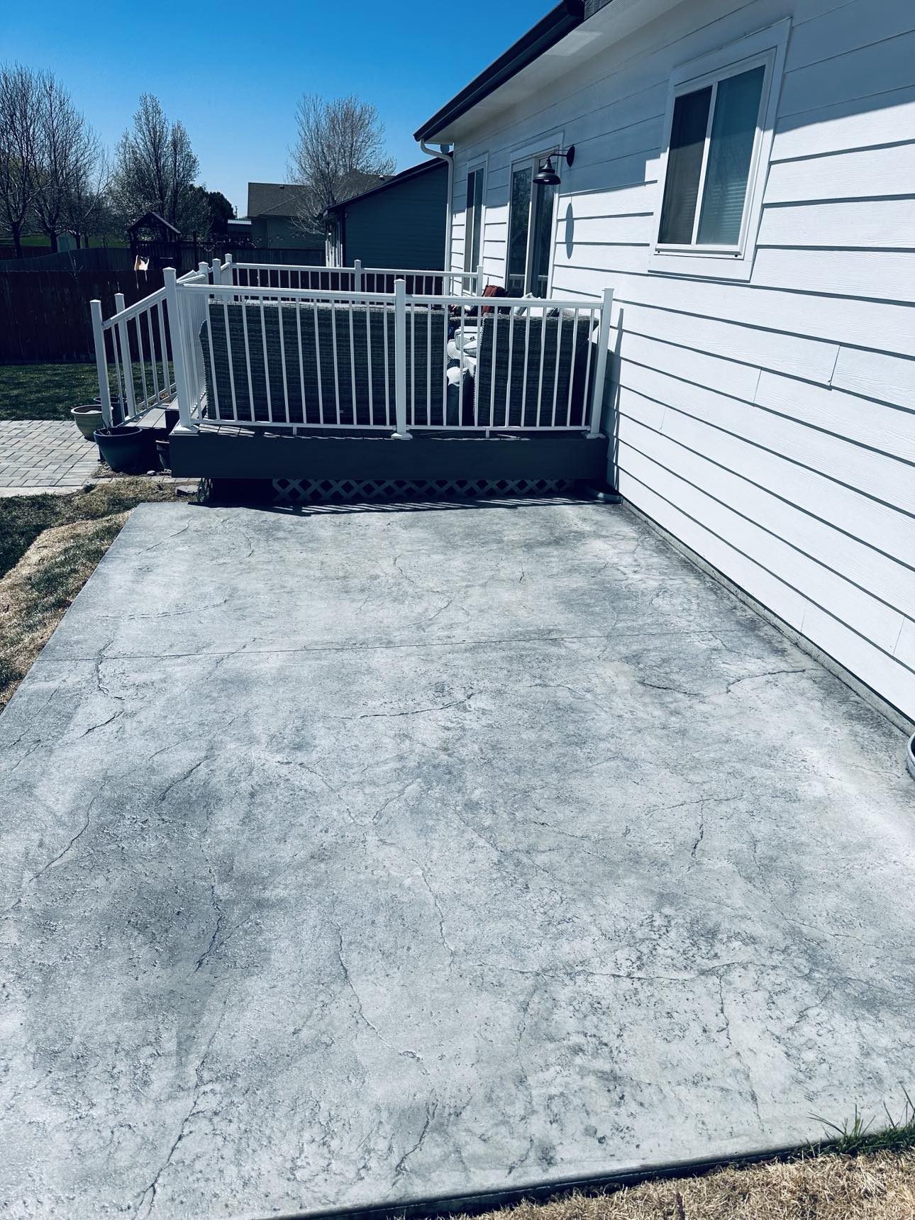 Custom concrete projects have a few extra steps compared to your traditional concrete. Pricing will vary based on your color choice, stamped design or textured pattern. While providing you with a free estimate, our team leader will go over all the price variables, design layout and answer any questions or concerns you may have.